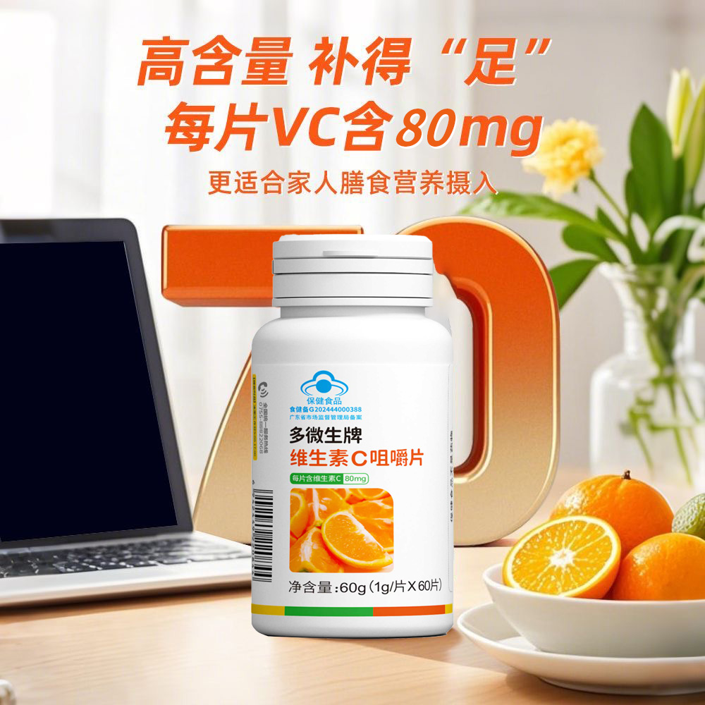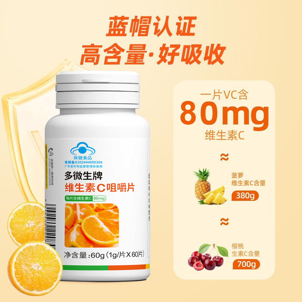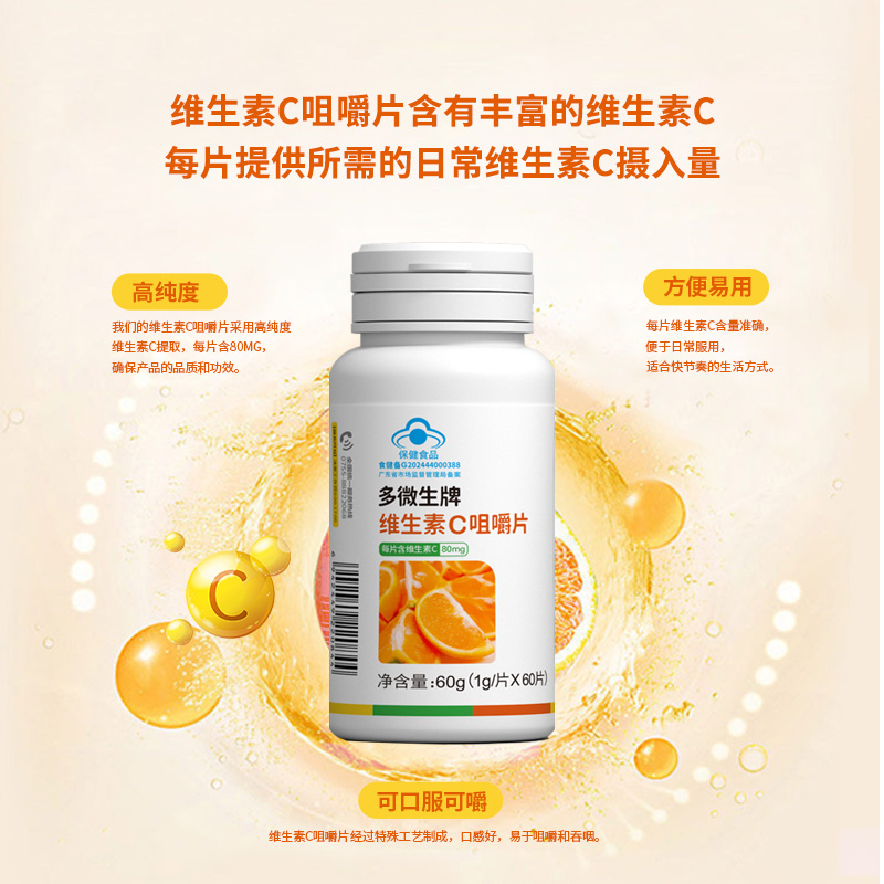 提供所需的日常维生素C摄入量,每片含80mg维生素C
